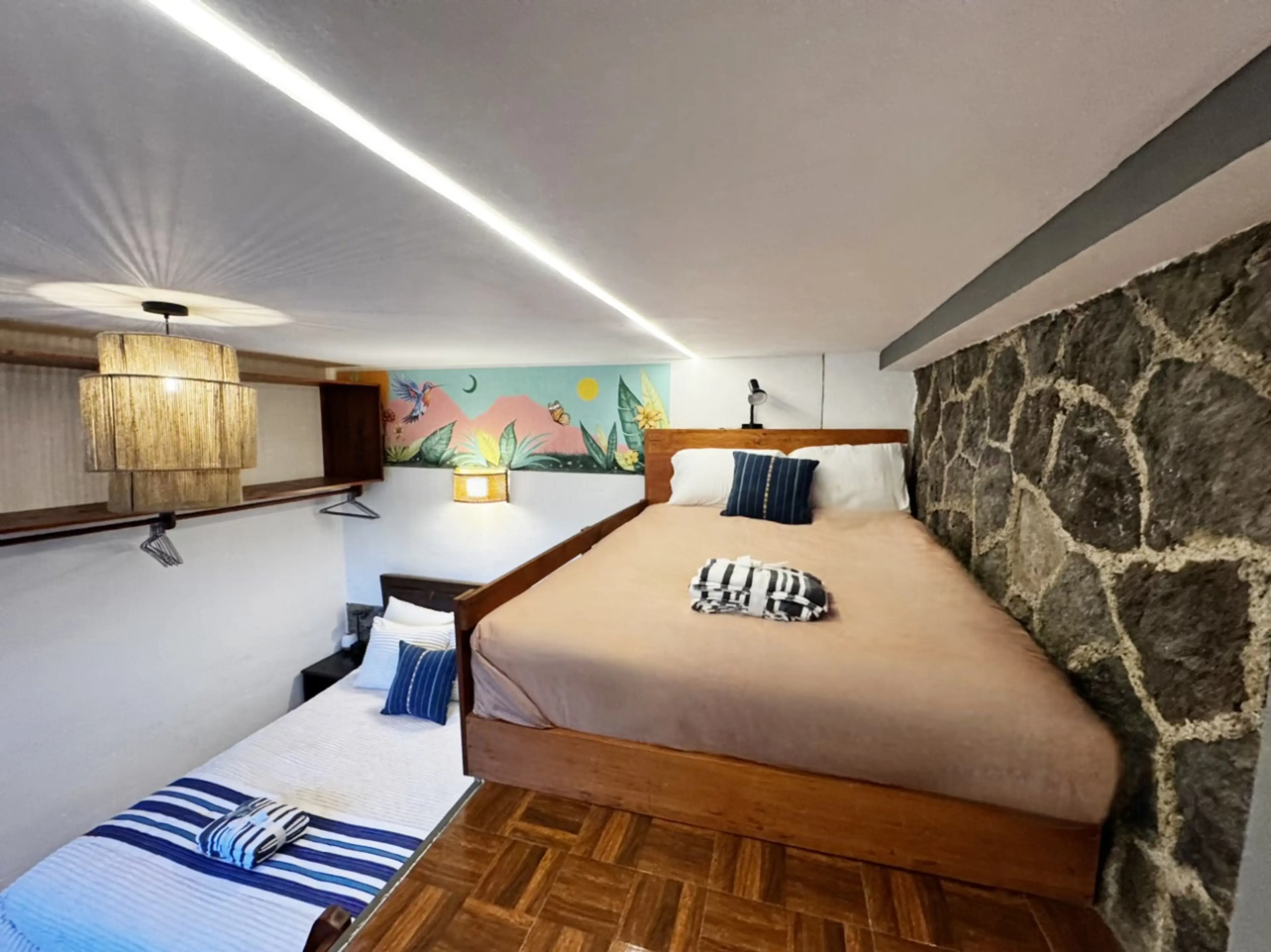 Enjoy a cozy, family-friendly room at our boutique hotel on Lake Atitlán. The space includes a Queen bed and a double bed, with a newly renovated private bathroom just steps away. A large window brings in natural light and beautiful lake and garden views. Guests have access to a private pool, sauna,...