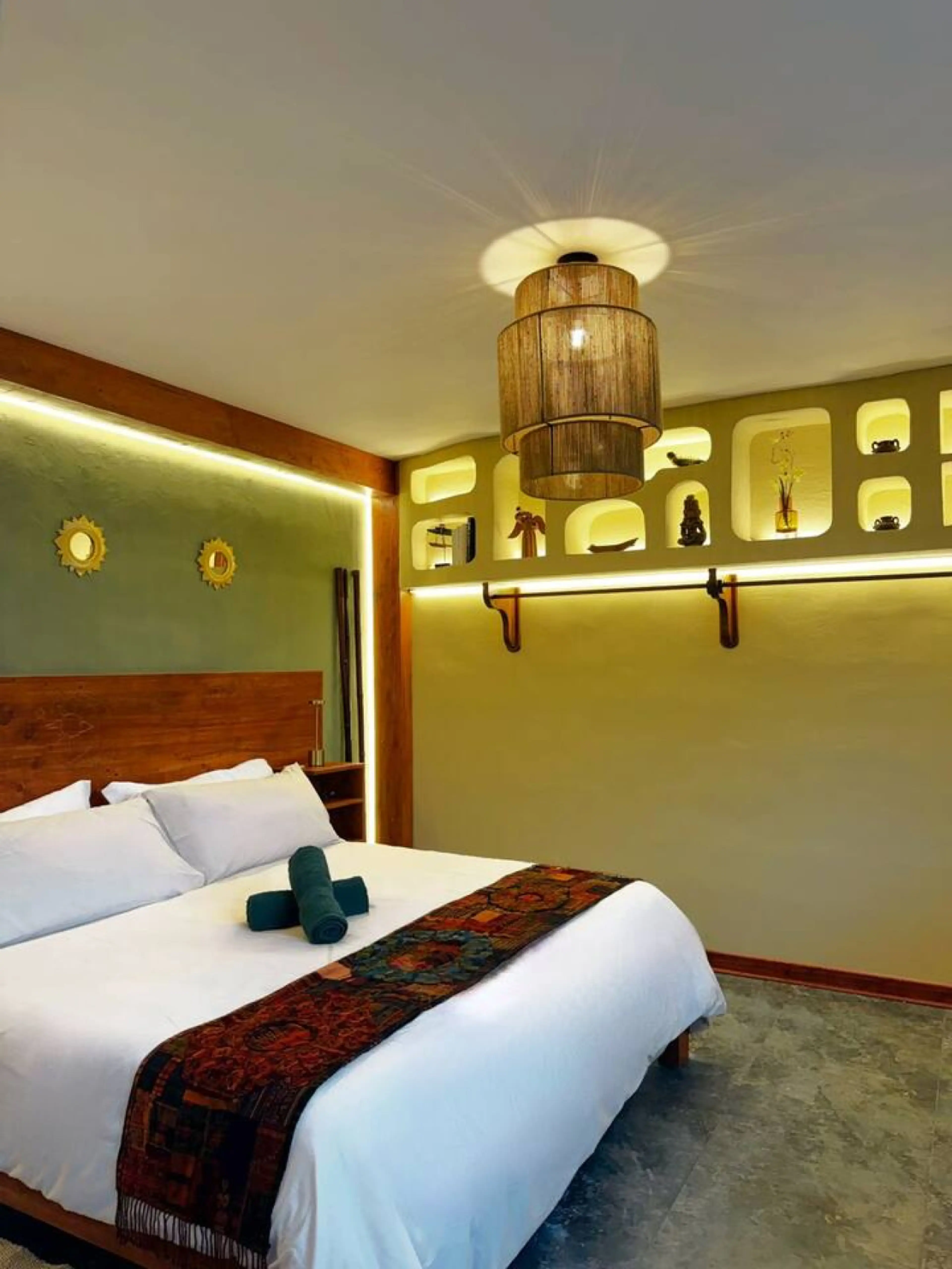 Indulge in our spacious suite, featuring a handcrafted king bed, luxury finishes and breathtaking views of Lake Atitlán as well as lush gardens. Wake up and enjoy stunning vistas from the comfort of your bed, while the floating staircase adds a touch of magic, immersing you in a tranquil cloud fores...